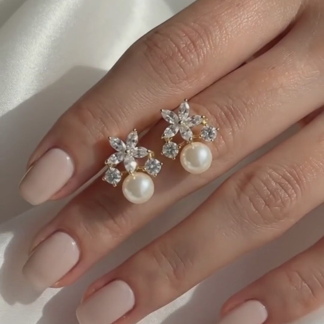 The Fleur Pearl Earrings are delicate, romantic earrings designed for brides who want timeless elegance with a soft, feminine touch.